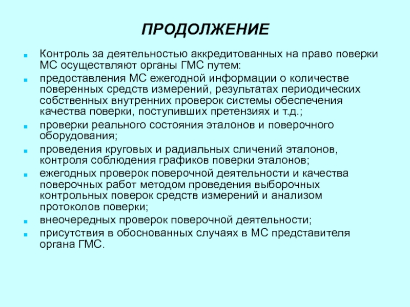 Поверочная деятельность, осуществляемая аккредитованными метрологическими службами юридических лиц, контролируется органами Государственной метрологической службы по месту расположения этих юридических лиц.