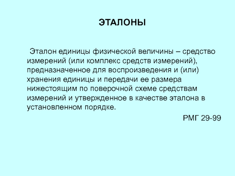 Размеры единиц воспроизводятся, хранятся и передаются соответствующими эталонами;