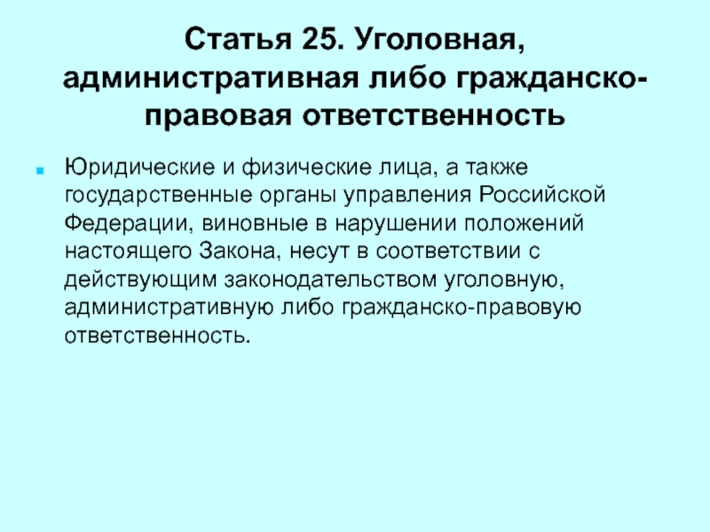 Слайд 262Статья 25. Уголовная, административная либо гражданско-правовая ответственность