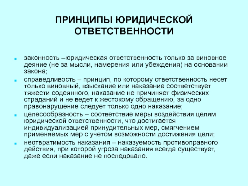 Слайд 268ПРИНЦИПЫ ЮРИДИЧЕСКОЙ ОТВЕТСТВЕННОСТИ