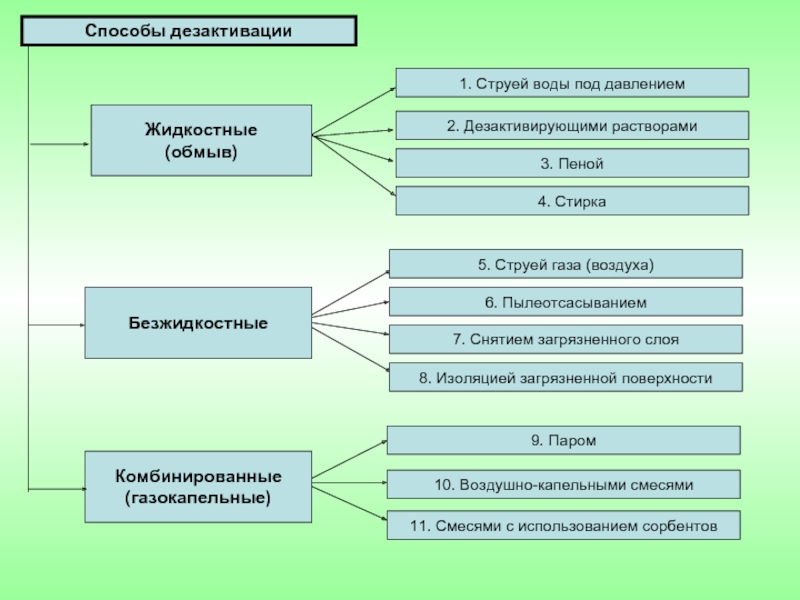 Слайд 13Жидкостные способы дезактивации высокоэффективны и универсальны, практически все существующие табельные технические