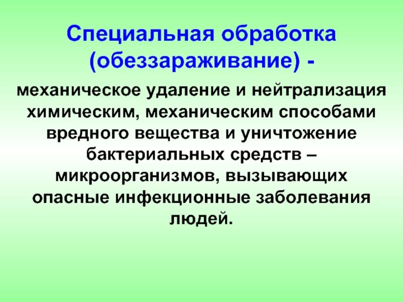 Слайд 4Специальная обработка осуществляется и организуется в целях исключения или уменьшения опасности