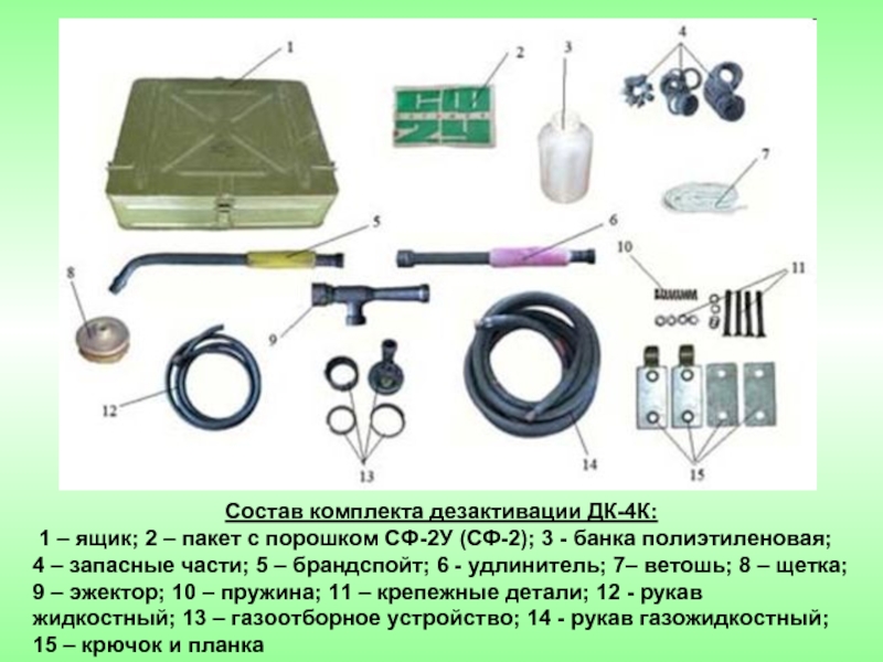 Слайд 31Состав комплекта дезактивации ДК-4К: