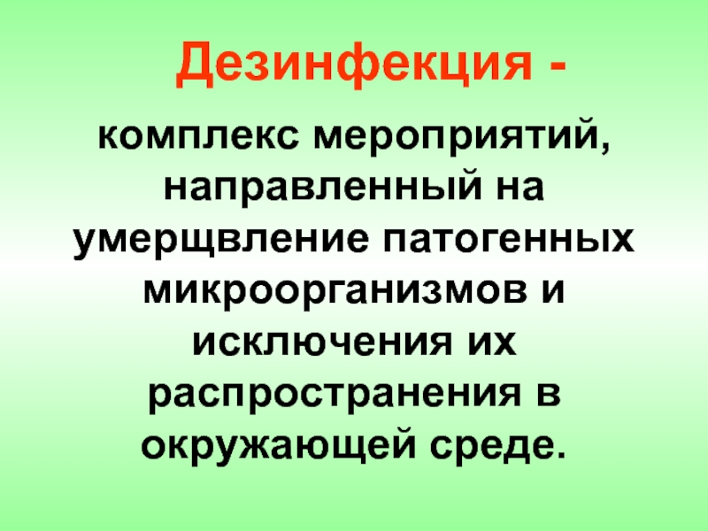 Слайд 20комплекс мероприятий, направленный на умерщвление патогенных микроорганизмов и исключения их распространения
