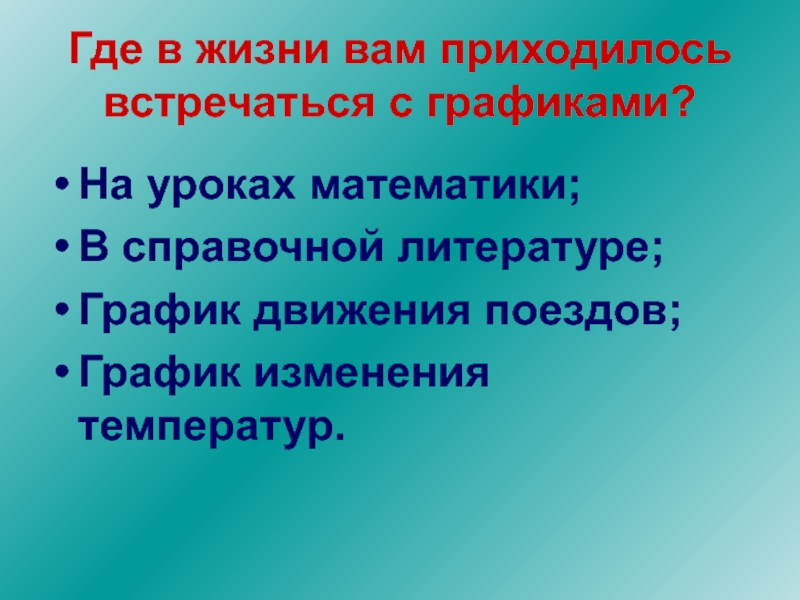 Графики непосредственно связаны не только с другими дисциплинами(физика, химия, астрономия и др.), но и широко применяется в бытовой и производственной сферах, науке.