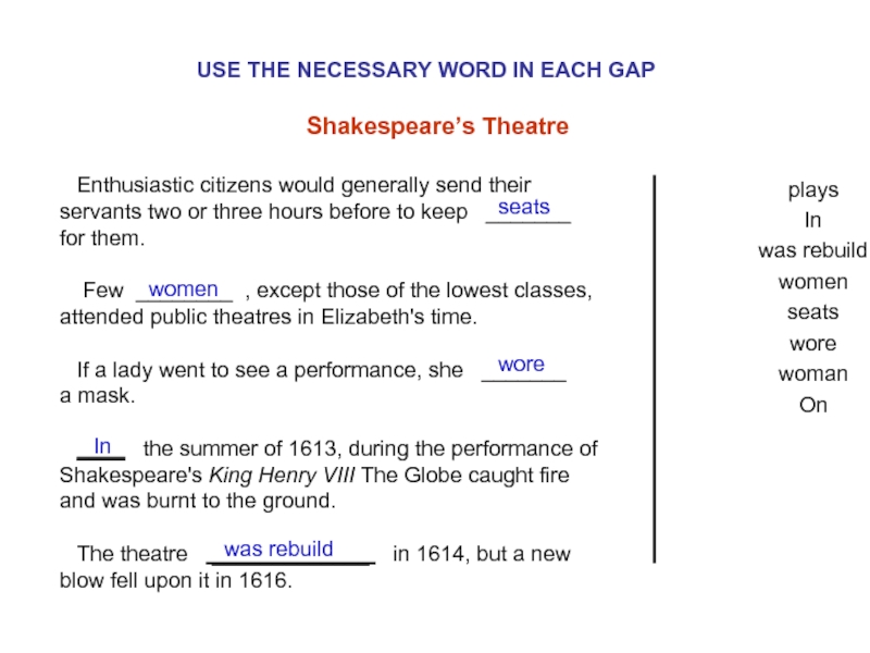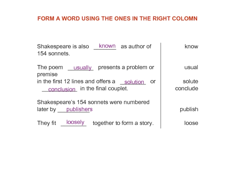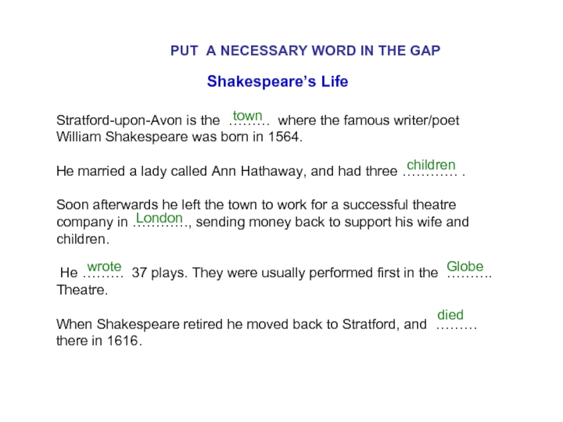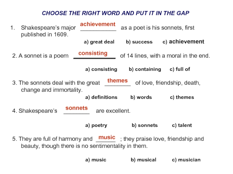 CHOOSE THE RIGHT WORD AND PUT IT IN THE GAP