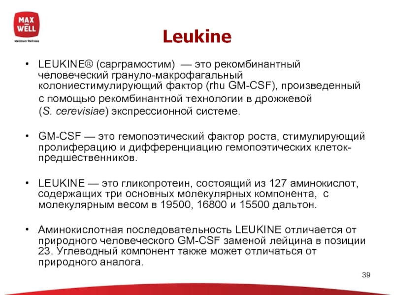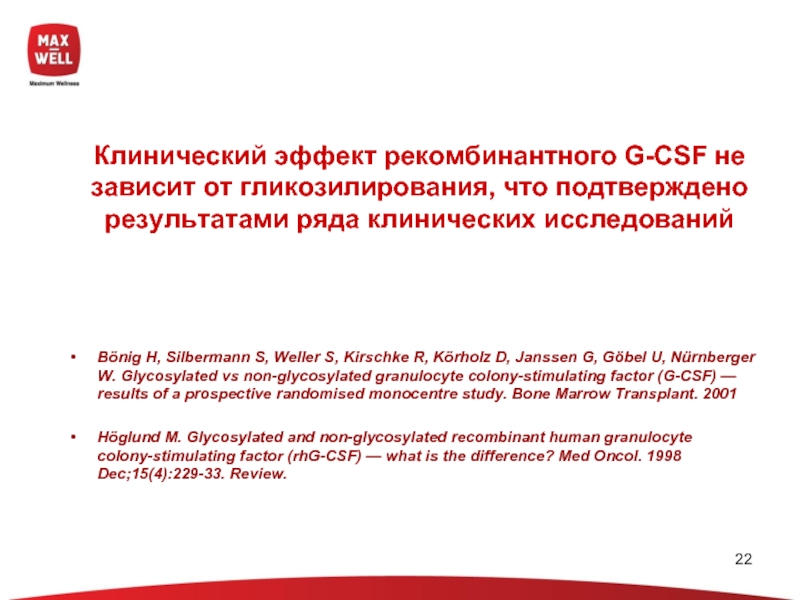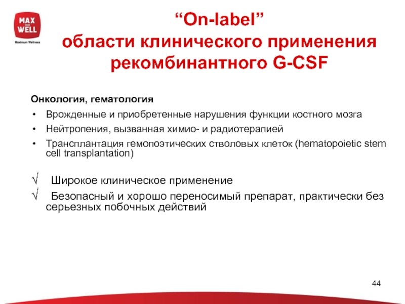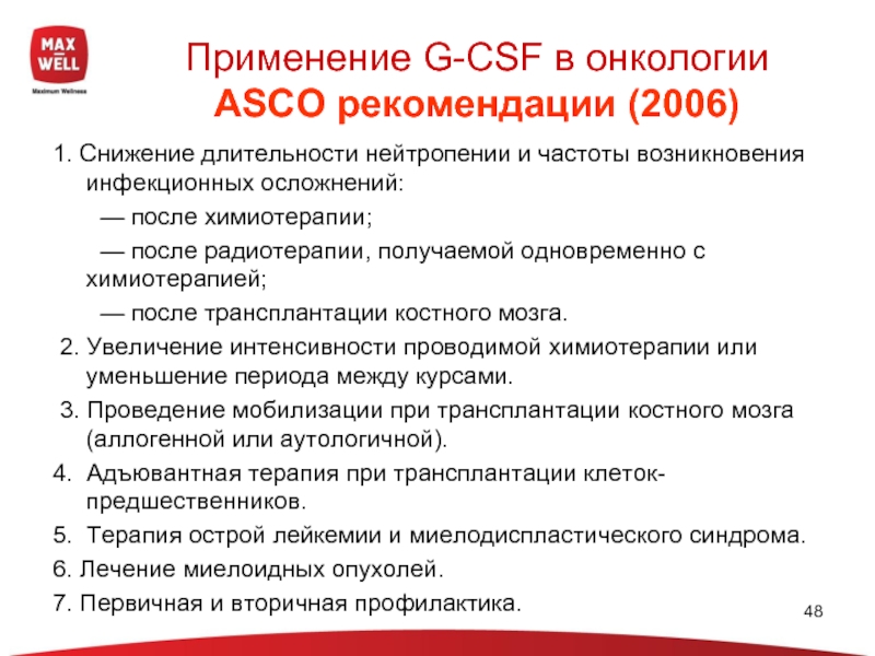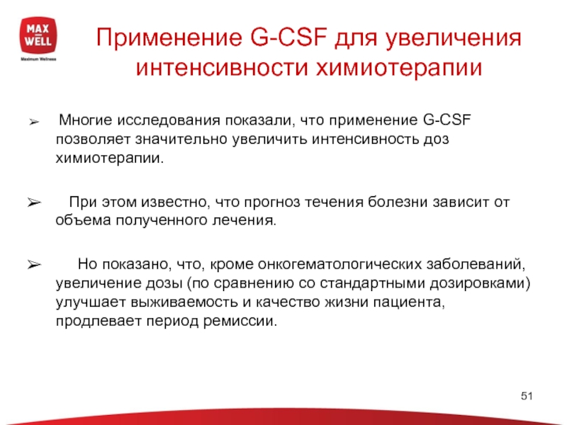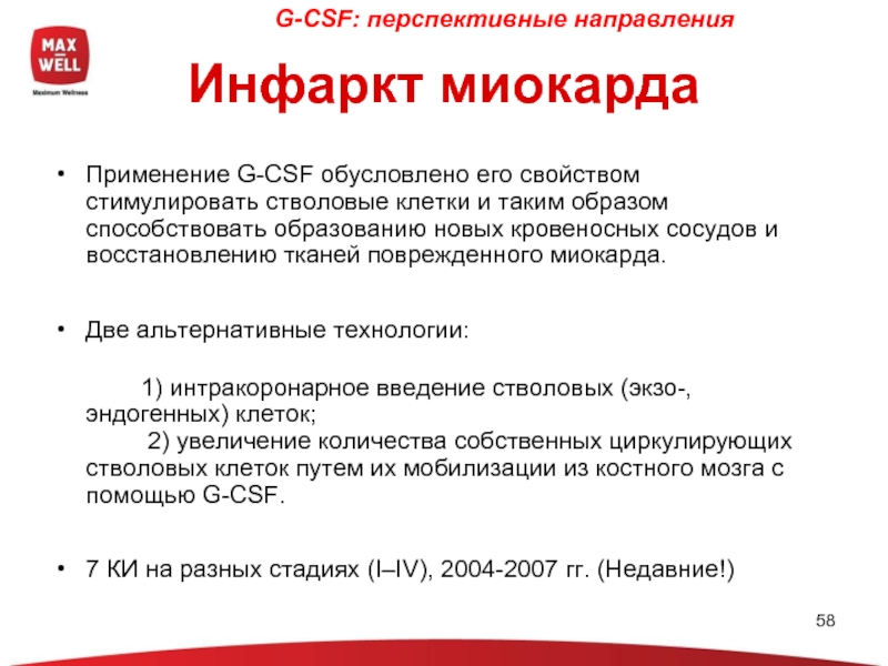 Слайд 58Применение G-CSF обусловлено его свойством стимулировать стволовые клетки и таким образом