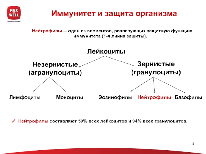 Нейтрофилы составляют 50% всех лейкоцитов и 94% всех гранулоцитов.