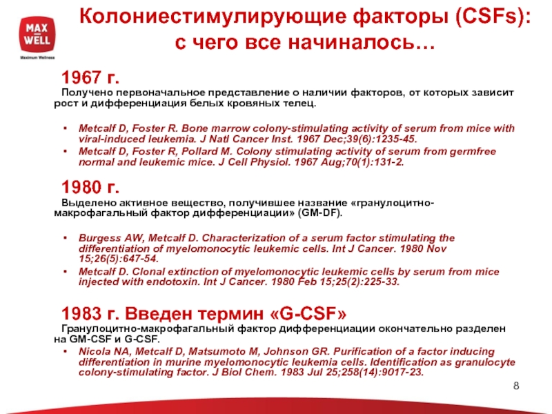 Слайд 8Колониестимулирующие факторы (CSFs):