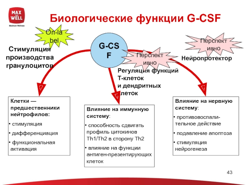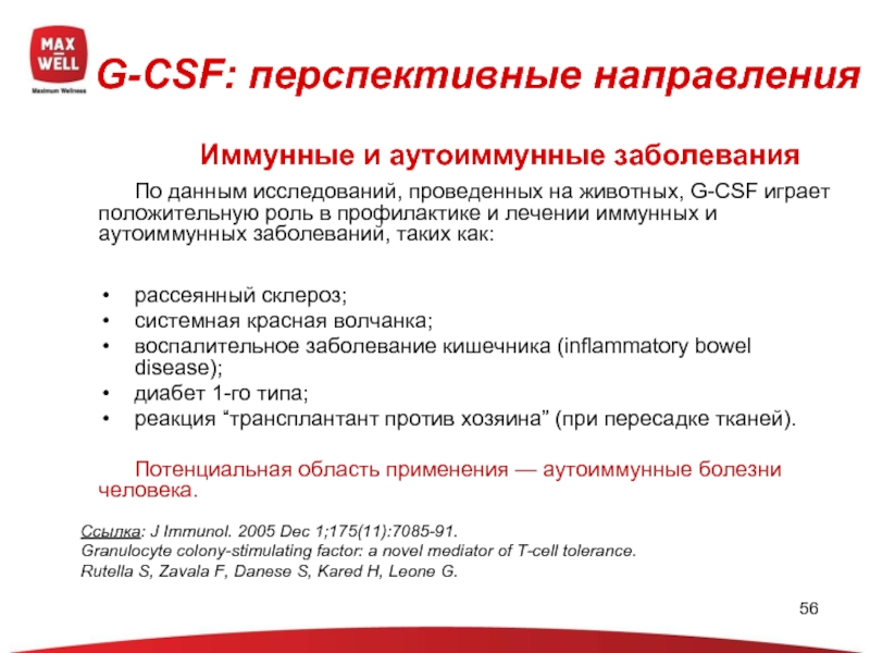 Слайд 56По данным исследований, проведенных на животных, G-CSF играет положительную роль в