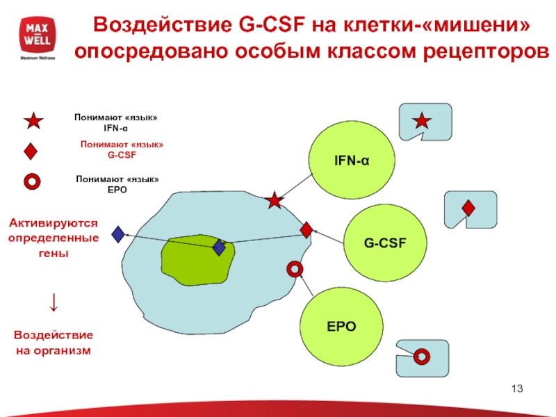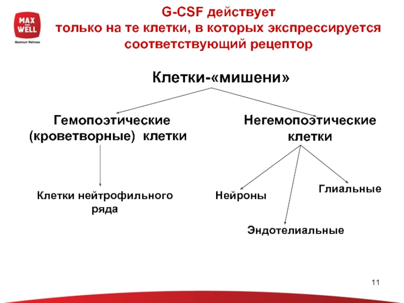 Слайд 13Воздействие G-CSF на клетки-«мишени»