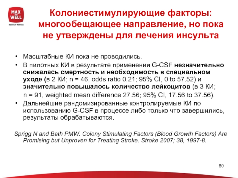 Слайд 60Колониестимулирующие факторы: многообещающее направление, но пока