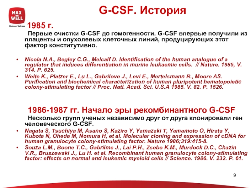 Welte K., Platzer E., Lu L., Gabrilove J., Levi E., Mertelsmann R., Moore AS. Purification and biochemical characterization of human pluripotent hematopoietic colony-stimulating factor // Proc. Natl. Acad. Sci. U.S.A 1985. V. 82. P. 1526.
