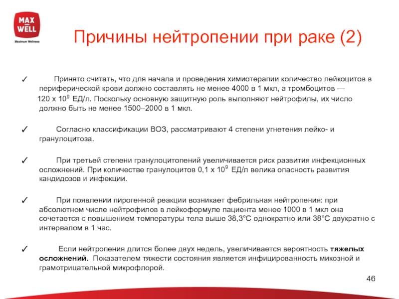 Пациенты с нейтропенией чрезвычайно подвержены риску развития инфекций.