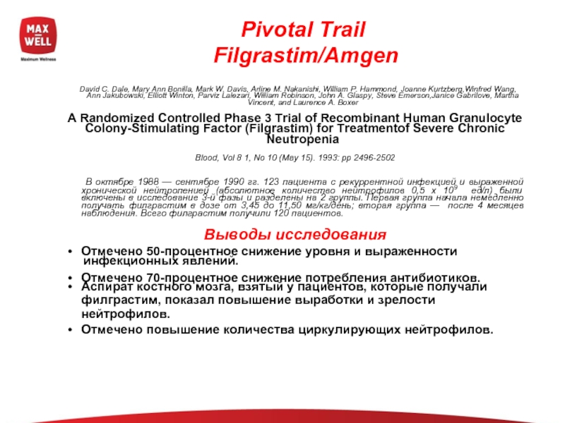 Дальнейшие рандомизированные контролируемые КИ по использованию G-CSF в процессе либо только что завершились, результаты обрабатываются.
