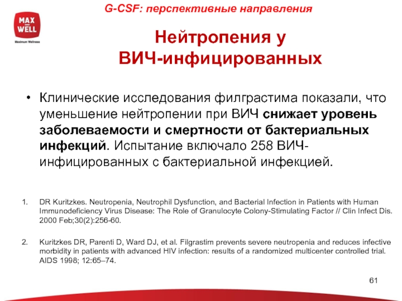 DR Kuritzkes. Neutropenia, Neutrophil Dysfunction, and Bacterial Infection in Patients with Human Immunodeficiency Virus Disease: The Role of Granulocyte Colony-Stimulating Factor // Clin Infect Dis. 2000 Feb;30(2):256-60.