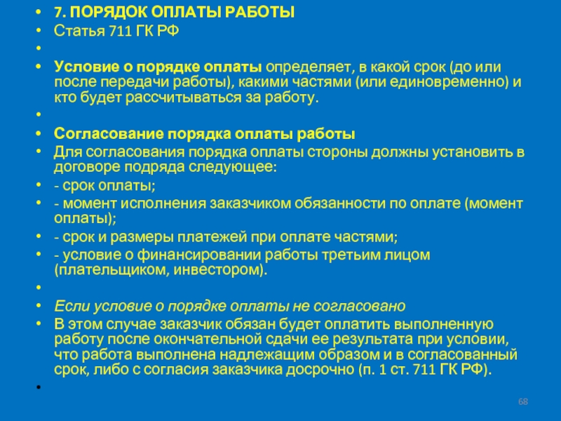 Слайд 687. ПОРЯДОК ОПЛАТЫ РАБОТЫ