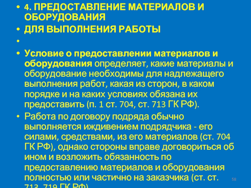 Слайд 584. ПРЕДОСТАВЛЕНИЕ МАТЕРИАЛОВ И ОБОРУДОВАНИЯ