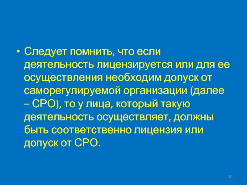 Слайд 10Следует помнить, что если деятельность лицензируется или для ее осуществления необходим