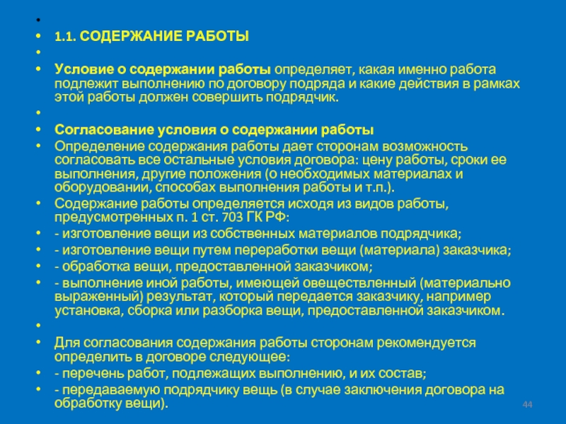 выполнения работы определяет, какими способами подрядчик будет выполнять работу, по каким вопросам и каким образом заказчик будет контролировать ее выполнение.