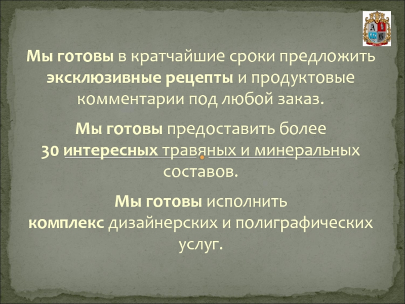 Если не удалось найти и скачать презентацию, Вы можете заказать его на нашем сайте. Мы постараемся найти нужный Вам материал и отправим по электронной почте. Не стесняйтесь обращаться к нам, если у вас возникли вопросы или пожелания: