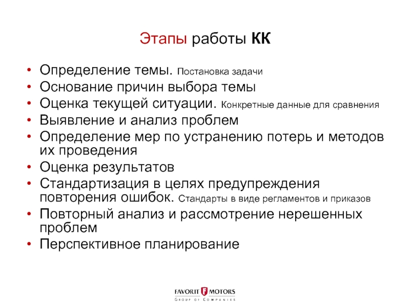 Слайд 8Этапы работы КК