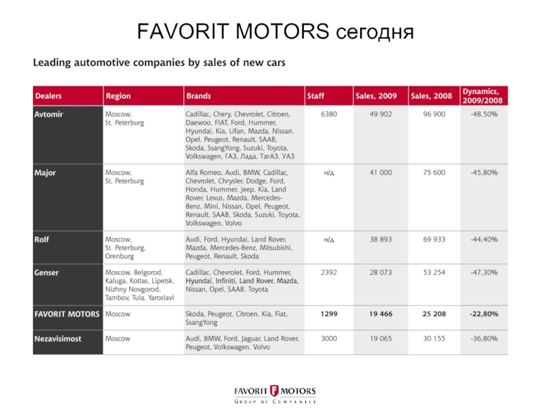 Слайд 1Группа компаний FAVORIT MOTORS