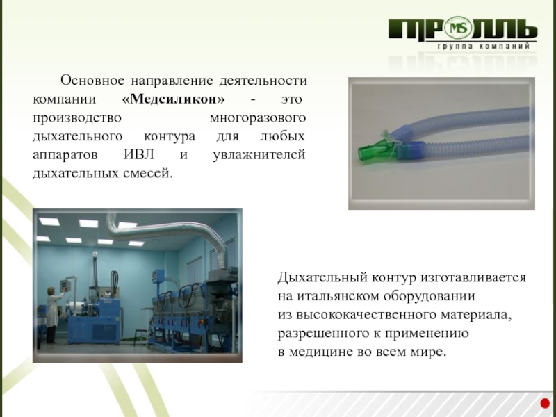 Дыхательный контур изготавливается на итальянском оборудовании из высококачественного материала, разрешенного к применению в медицине во всем мире.