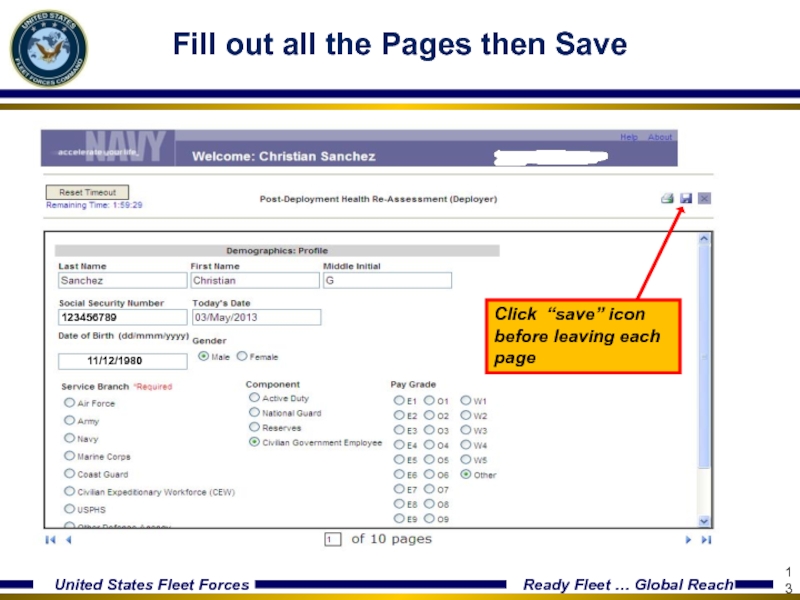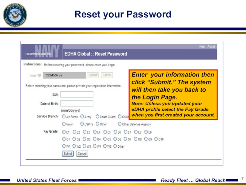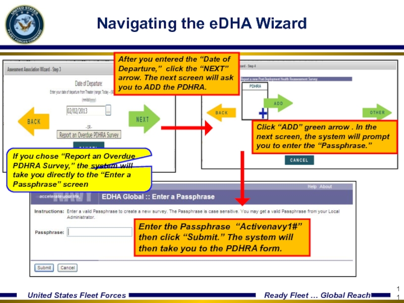 Enter the Passphrase “Activenavy1#” then click “Submit.” The system will then take you to the PDHRA form.