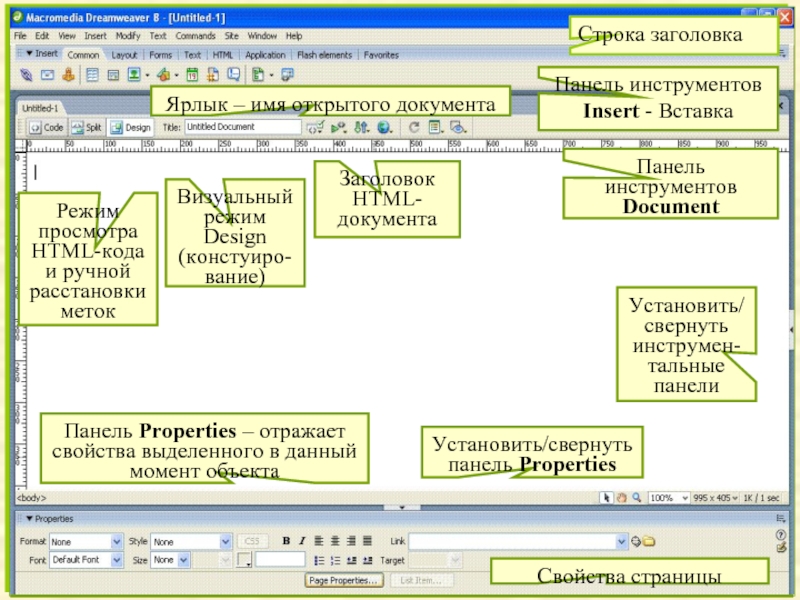 Панель Properties – отражает свойства выделенного в данный момент объекта