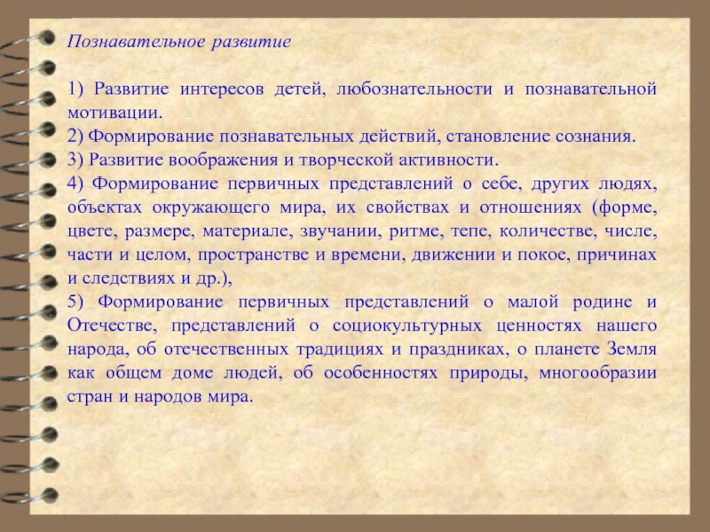 ребенок проявляет любознательность, задает вопросы взрослым и сверстникам, интересуется причинно-следственными связями, пытается самостоятельно придумывать объяснения явлениям природы и поступкам людей; склонен наблюдать, экспериментировать. Обладает начальными знаниями о себе, о природном и социальном мире, в котором он живет; знаком с произведениями детской литературы, обладает элементарными представлениями из области живой природы, естествознания, математики, истории и т.п.; ребенок способен к принятию собственных решений, опираясь на свои знания и умения в различных видах деятельности.