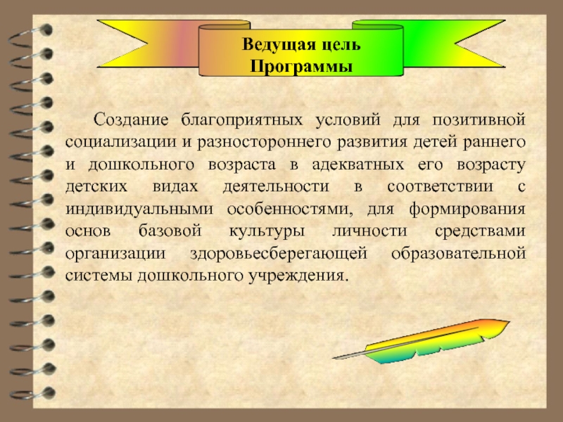 Цель программы: создание условий для сохранения и укрепления здоровья детей, для профилактики и коррекции нарушений опорно-двигательного аппарата и зрения средствами и формами оздоровительной физкультуры, формирования физически совершенного, гармонично развитого ребенка с ответственным отношением к собственному здоровью.