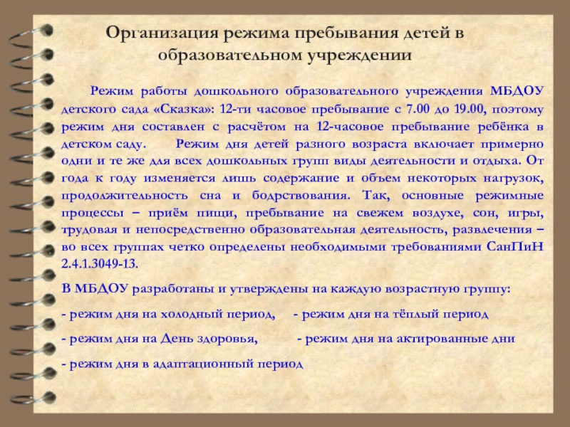 - Санитарно-эпидемиологические требования к устройству, содержанию и организации режима работы дошкольных образовательных учреждений СанПиН 2.4.1.3049-13;