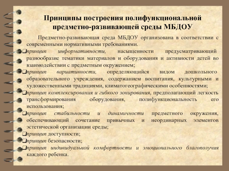 Принципы построения полифункциональной предметно-развивающей среды МБДОУ
