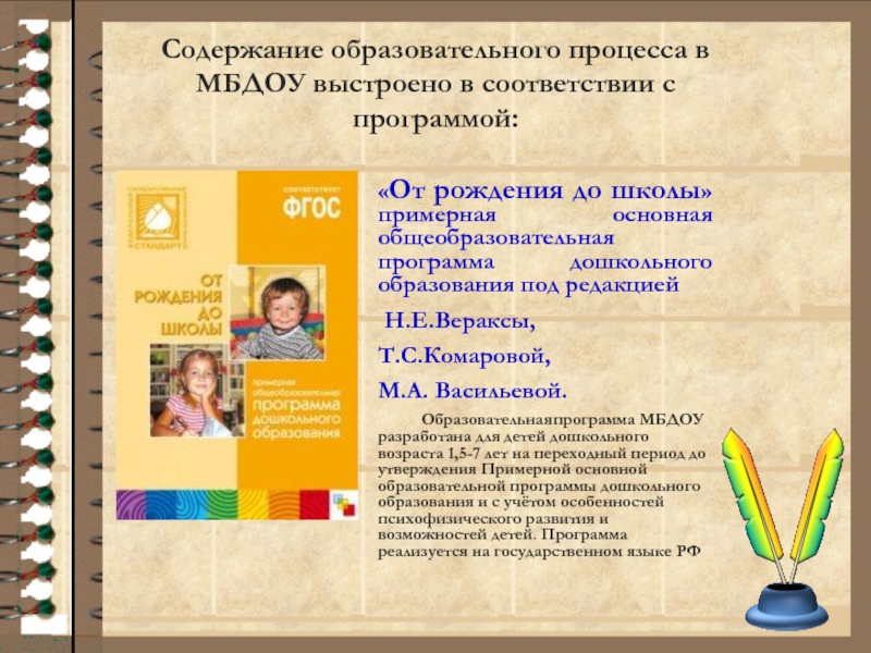 рождения до школы» примерная основная общеобразовательная программа дошкольного образования под редакцией