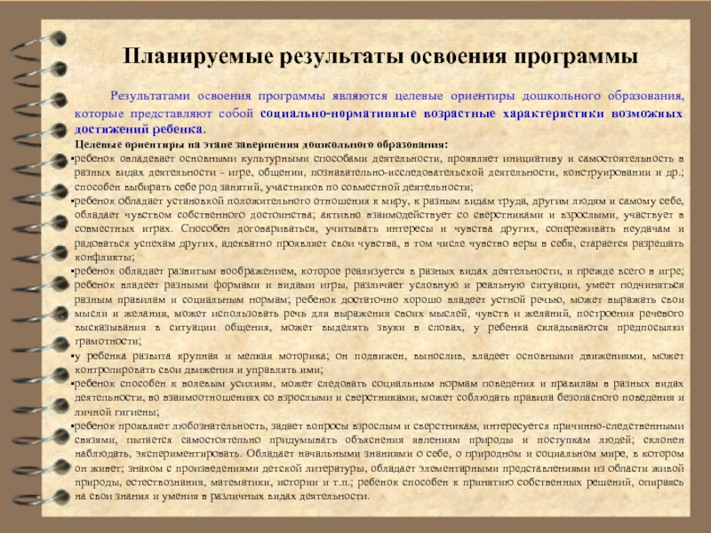 Результатами освоения программы являются целевые ориентиры дошкольного
