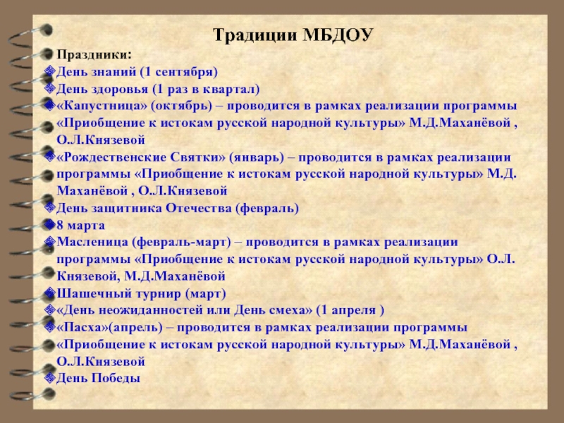 «Приобщение к истокам русской народной культуры» О.Л. Князева, М.Д. Маханёва