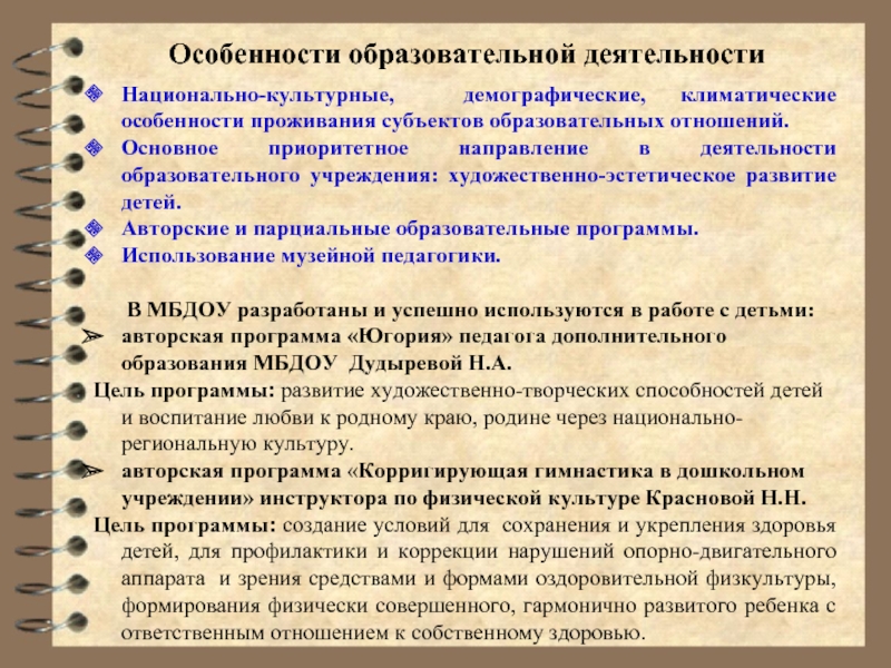 авторская программа «Югория» педагога дополнительного образования МБДОУ Дудыревой Н.А.