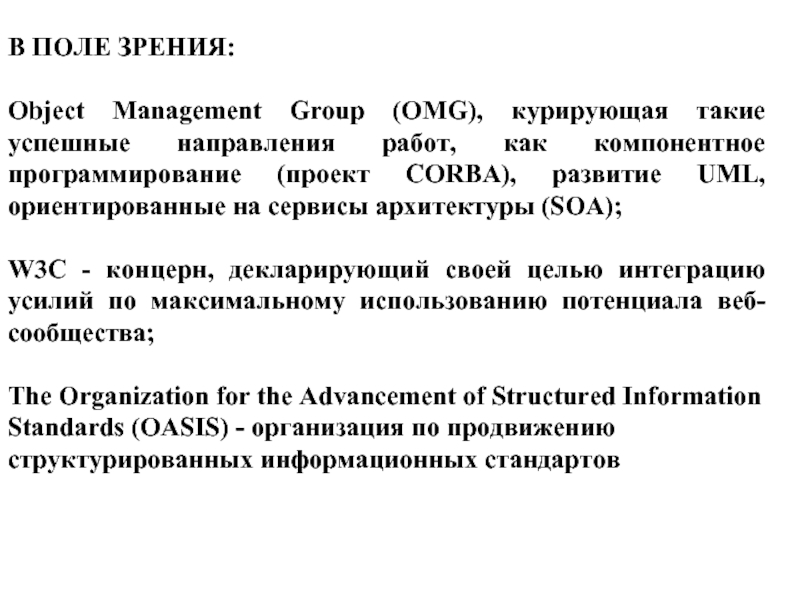Object Management Group (OMG), курирующая такие успешные направления работ,