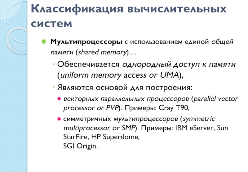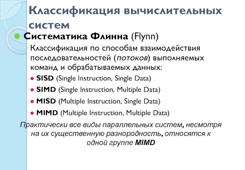 Практически все виды параллельных систем, несмотря на их существенную разнородность, относятся к одной группе MIMD