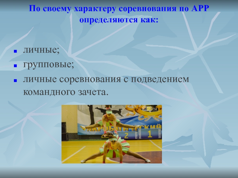 Слайд 2По своему характеру соревнования по АРР определяются как: