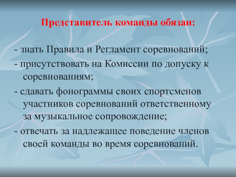 Требования Главного судьи являются обязательными для их немедленного исполнения на данных соревнованиях