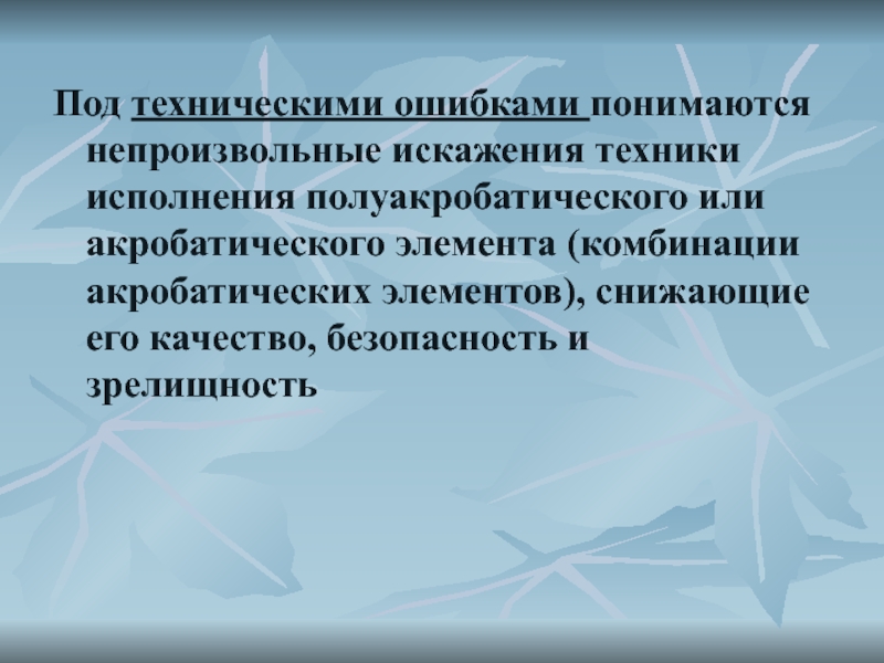 Слайд 44Под техническими ошибками понимаются непроизвольные искажения техники исполнения полуакробатического или акробатического