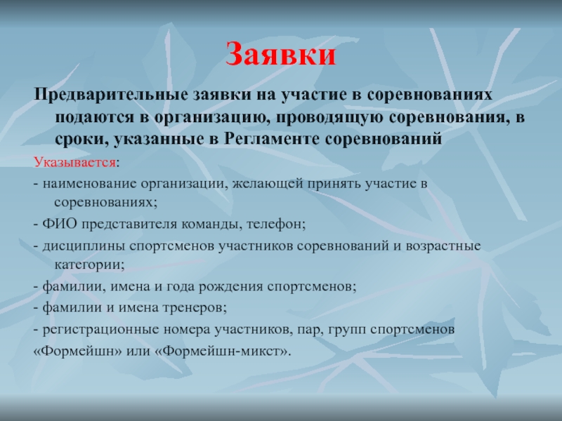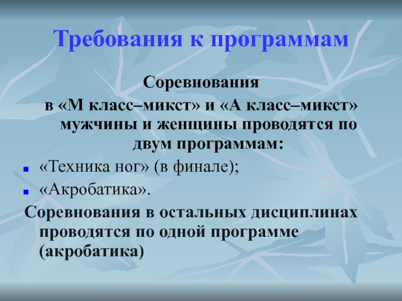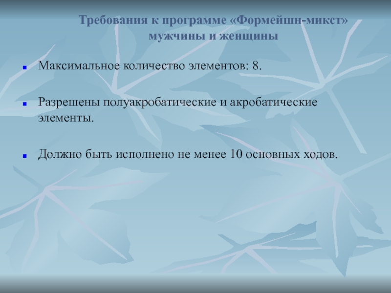 Требования к программе «Формейшн-микст» мужчины и женщины
