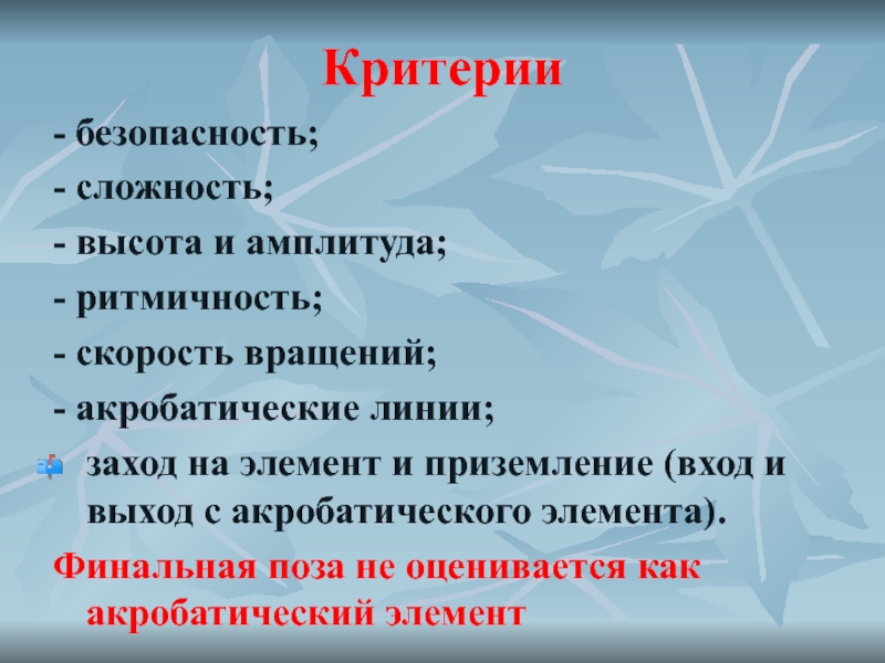 элемента (комбинации акробатических элементов), снижающие его качество, безопасность и зрелищность