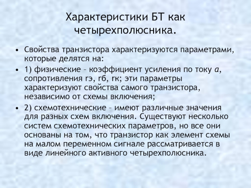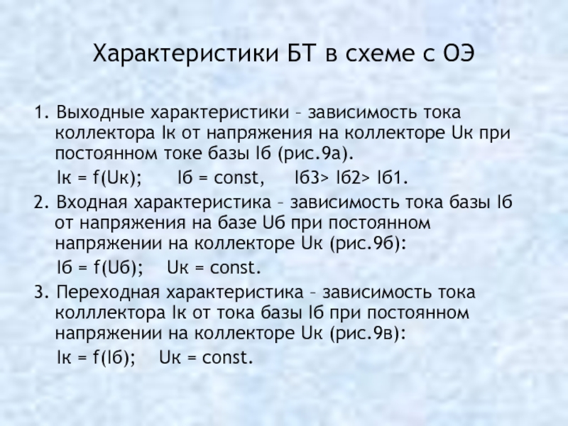 Такая схема включения не дает значительного усиления, но обладает хорошими частотными и температурными свойствами. Применяется она не так часто, как схема ОЭ.