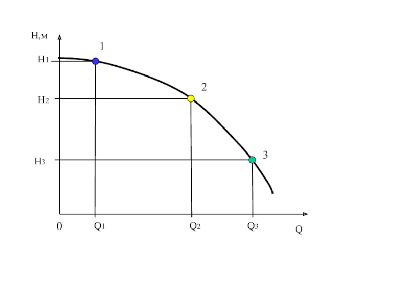 устанавливаются значения напоров H1, H2, H3, соответствующих трем подачам Q1, Q2, Q3.