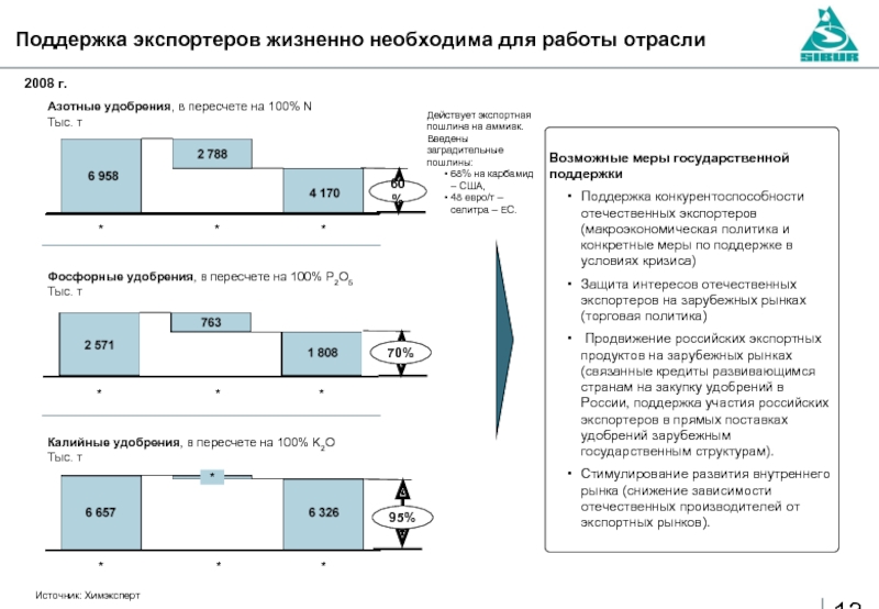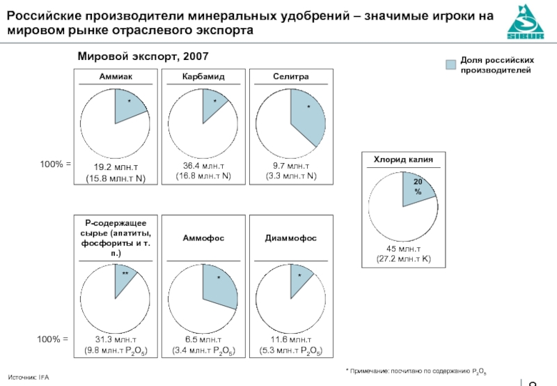 На мировом рынке в целом доля российского химического комплекса немногим более 1%; но по отдельным видам продукции достигает 15%
