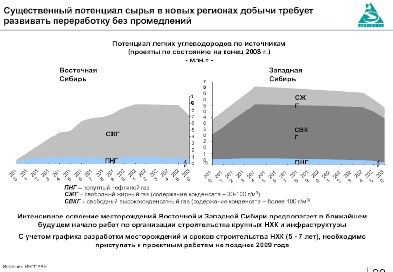 С учетом графика разработки месторождений и сроков строительства НХК (5 - 7 лет), необходимо приступать к проектным работам не позднее 2009 года
