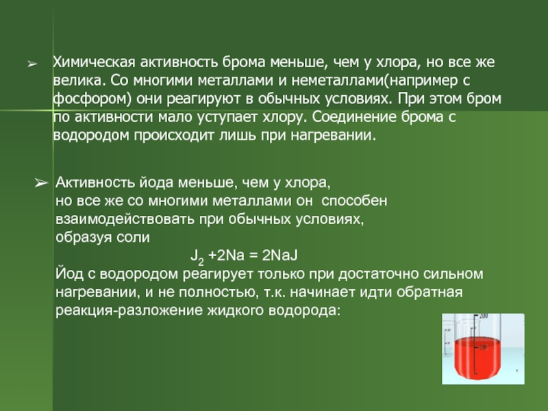 Активность йода меньше, чем у хлора,